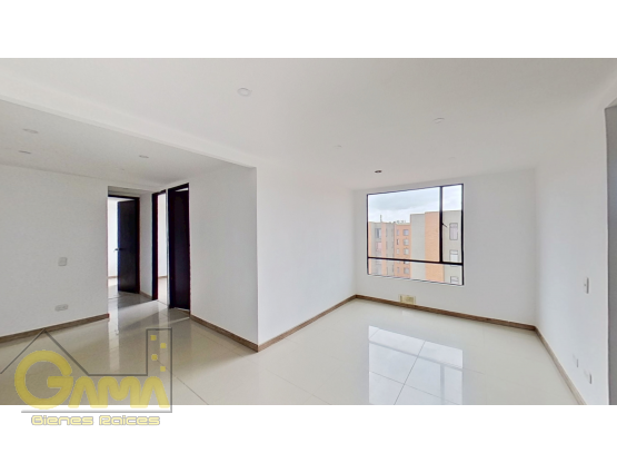 Apartamento en venta de 59m2, con vista interior, ubicado en un 6to piso (Torre 10 Apto 604), acceso por escaleras, parqueadero comunal. Consta de 3 habitaciones, 1 baño, sala comedor, cocina integral y zona de lavandería. Tiene piso laminado en habitaciones y cerámico en baño, cocina y zona social. El conjunto cuenta con salón comunal, parque infantil, zonas verdes y vigilancia privada las 24 horas. Cerca a centro comercial Miraflores; cerca a tiendas y supermercados de barrio; cerca a colegio Minuto de Dios Ciudad Verde; cerca a universidad UNAD - Ciudad Verde; cerca a paraderos de transporte público e intermunicipal; Vías de acceso por la Calle 33 y Carrera 38.