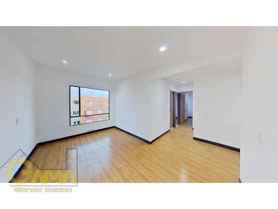 Apartamento en venta de 60m2, con vista interior, ubicado en un 6to piso (Torre 10 Apto 601), acceso por escaleras. Consta de 3 habitaciones, 2 baños, sala comedor, hall de estudio, cocina integral y zona de lavandería. Tiene piso laminado en zona social, habitaciones y cerámico en cocina y baños. El conjunto cuenta con zonas verdes, zona de niños, salón social, parqueadero comunal y vigilancia privada las 24 horas. Cerca a centro comercial Miraflores, Jardín - Soacha y Prado Verde; cerca a almacenes de cadena como Olímpica; cerca a colegio Minuto de Dios Ciudad Verde; cerca a universidad Nacional Abierta y a Distancia; cerca a estación de Transmilenio San Mateo; Vías de acceso por la Carrera 31 y la Av. Potrero Grande .