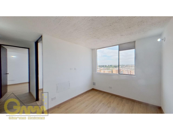 Apartamento en venta de 41m2, con vista exterior, ubicado en un 13vo piso (Torre 1 Apto 1305), acceso por acsensor, parqueadero comunal. Consta de 2 habitaciones, 1 baño, sala comedor, cocina integral y zona de lavandería. Tiene piso laminado en zona social y habitaciones y piso cerámico en cocina y baño. El conjunto cuenta con salon comunal, parque infantil, zonas verdes y vigilancia privada las 24 horas. Cerca a centro comercial Plaza Imperial; cerca a almacenes de cadena Tienda D1, Tienda Ara, Surtimax; cerca a colegio Pedagógico Dulce María; cerca a paraderos del SITP; Vías de acceso por la Calle 152 y Carrera 116.